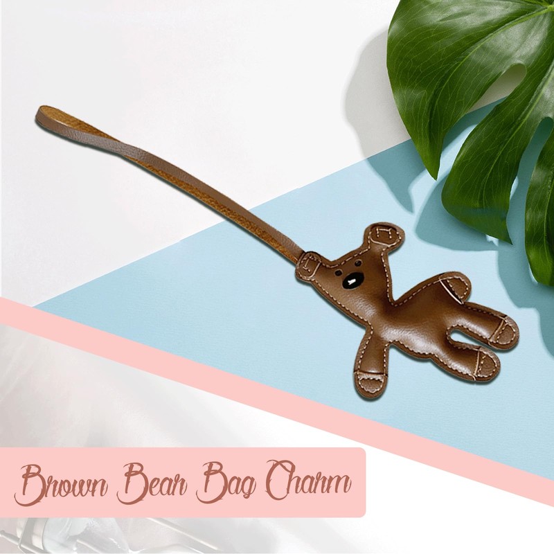 Cosmeria Brown Bear Faux Leather Bag Charm, Lightweight and Durable Bag Accessory, Fashionable Keychain for Bags and Keys