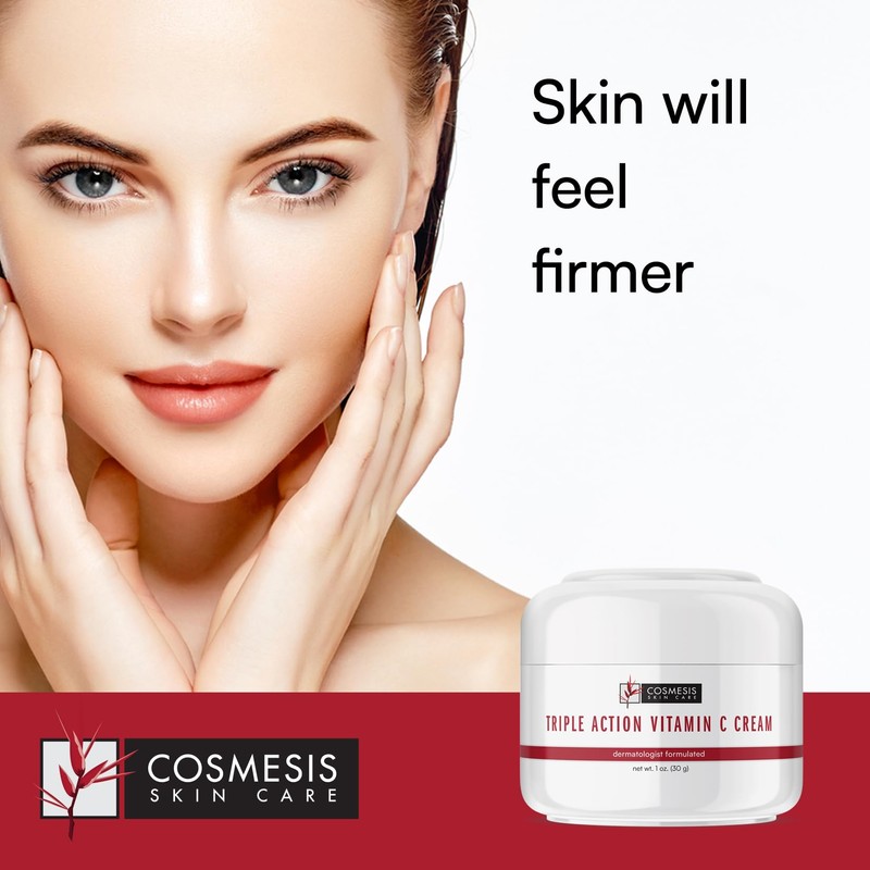 Cosmesis Triple Action Vitamin C Cream - Get Youthful Skin with Collagen Synthesis, Hydration & Blemish Reduction - 1oz