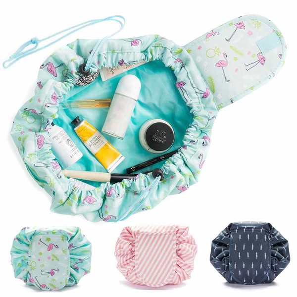 Cosmetic Bag, Cosmetic Bag Quick Make-Up Bag Make-up Bag Toiletry Bag with Drawstring (Turquoise Flamingos)