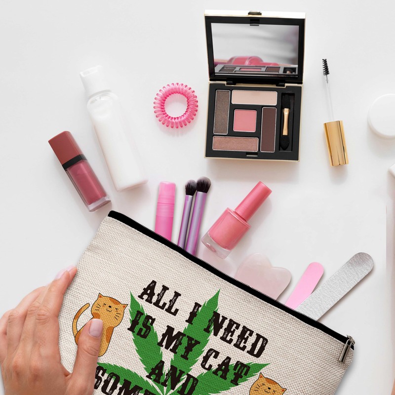 Cosmetic Bag for Women, All I Need Is My Cat And Some Weed Travel Makeup Bag, Small Unique Makeup Bag, Cat Lover Gifts for Women, Birthday Gifts for Teen Girls Sisters Besties Friends -15