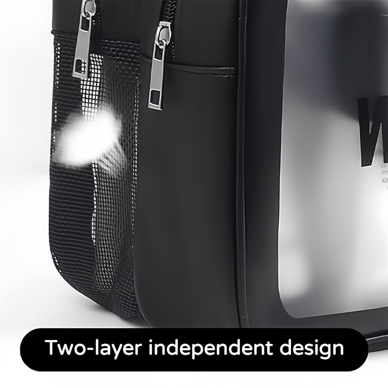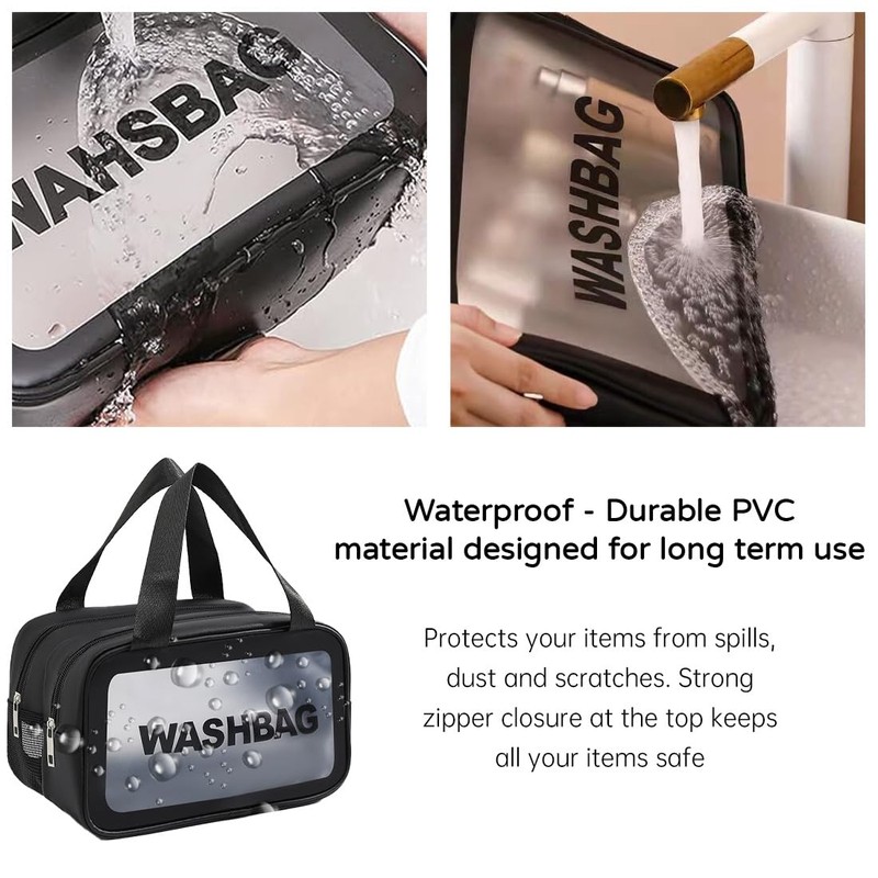 - Made of durable PU+PVC, this toiletry bag offers a thick, waterproof design for easy cleaning and convenience. Ideal for swimming and camping.