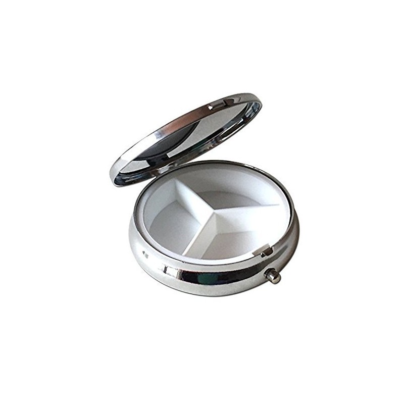 - Stylish silver pill box with a decorative high-gloss butterfly and flower design