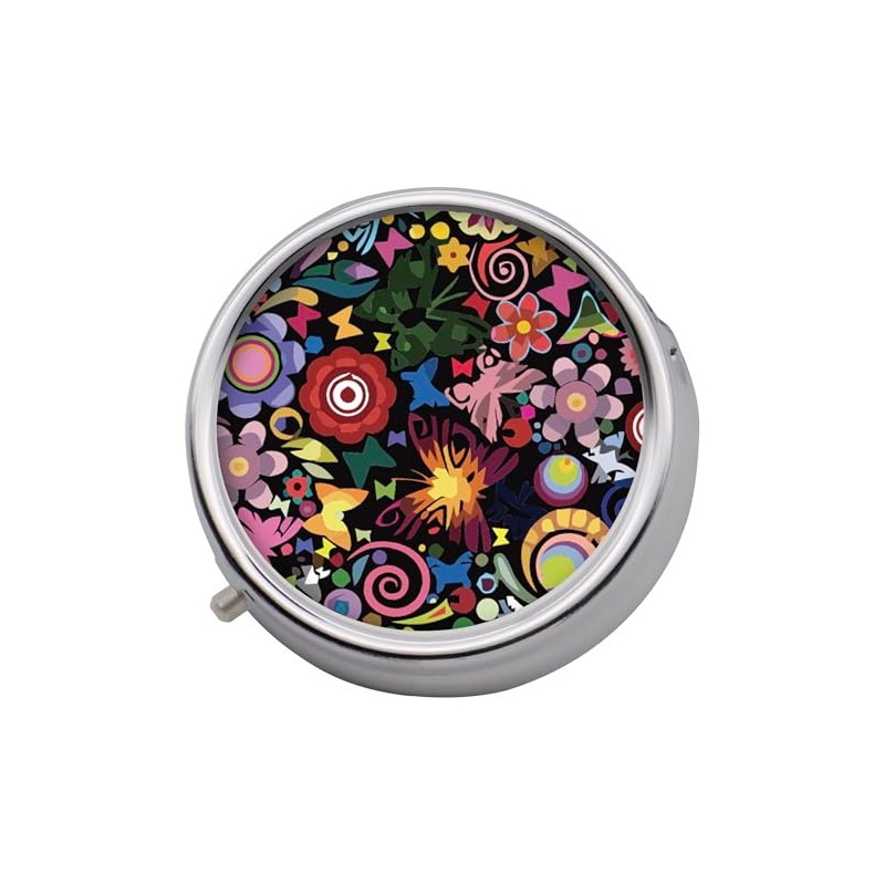 Cosmic Flowers Three Section, Pill Box Medication Case for Pocket or Travel