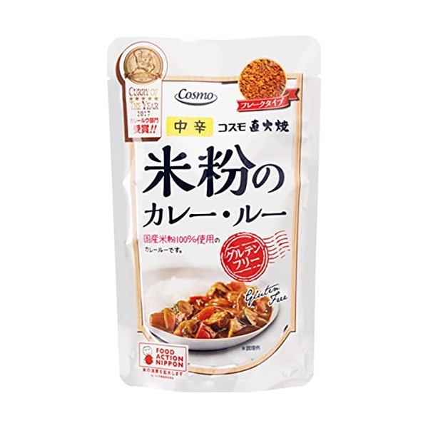 Cosmo Direct Fire Grilled Rice Flour Curry Roux, Medium Spicy, 3.9 oz (110 g) (3) Bag Set