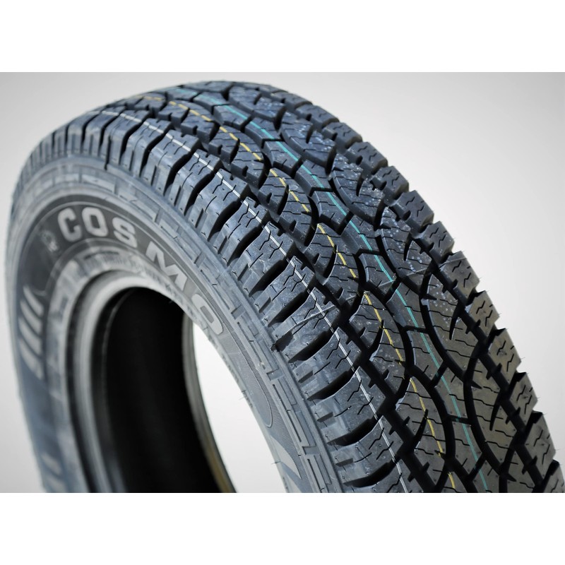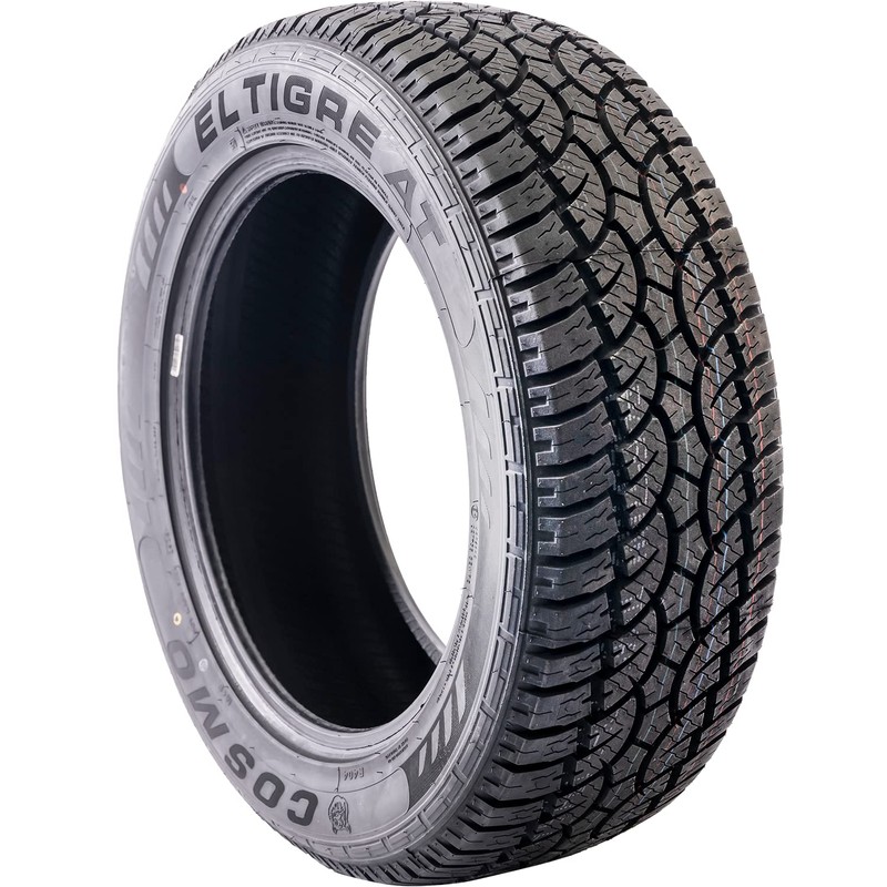 The Cosmo El Tigre AT is an all terrain, all season tire manufactured for SUVs and light trucks. Cosmo offers a 55,000 mile treadwear warranty. Some sizes come with a free road hazard warranty. The tire guarantees great year round traction. The optimized footprint upgrades the steering responsiveness and the driving stability, while the reinforced structure enhances the overall load capacity. The tire enhances the versatile terrain traction, by boosting its grip on soft, loose, and uneven terrain surface conditions. The tread design keeps the footprint clean of mud and snow, and it prevents stone retention. The stabilized footprint of the El Tigre AT prevents irregular wear formations, boosting the service life.