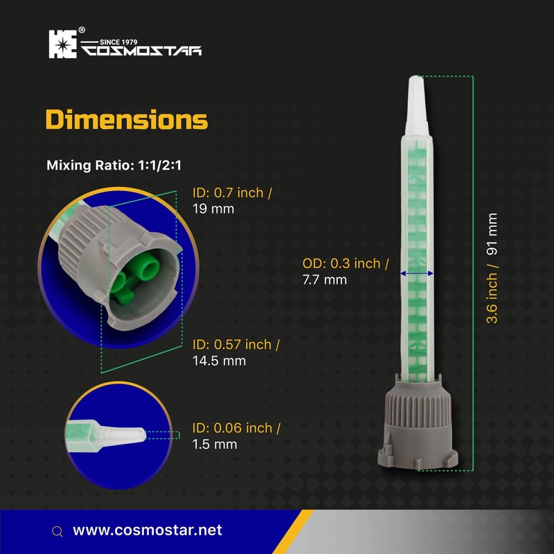 - 【Application】These versatile mixers are compatible with a wide range of adhesives and sealants, including epoxy and polyurethane, and can be used with all significant adhesive brands. They are suitable for diverse industries, such as electronics, automotive, wind and solar energy devices, and many more.