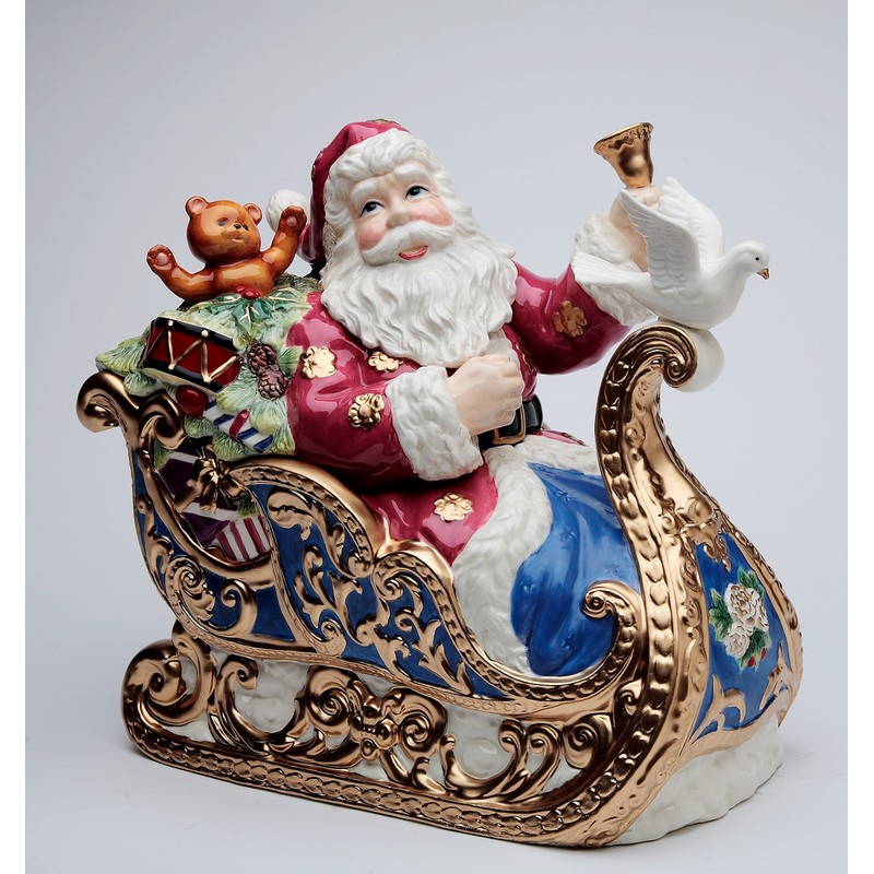 Cosmos Gifts 10673 Fine Ceramic Christmas Hand Painted Fantasia Santa on Sleigh Cookie Jar, 11" H