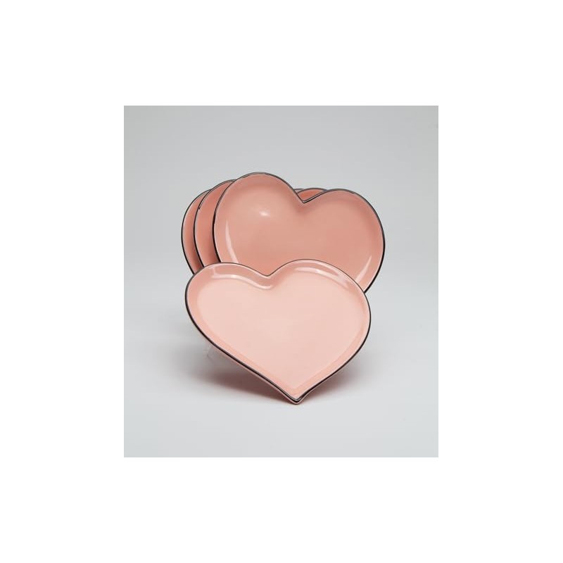 Cosmos Gifts Pink Heart Shaped Set of 4 Plates, 5 1/4" D