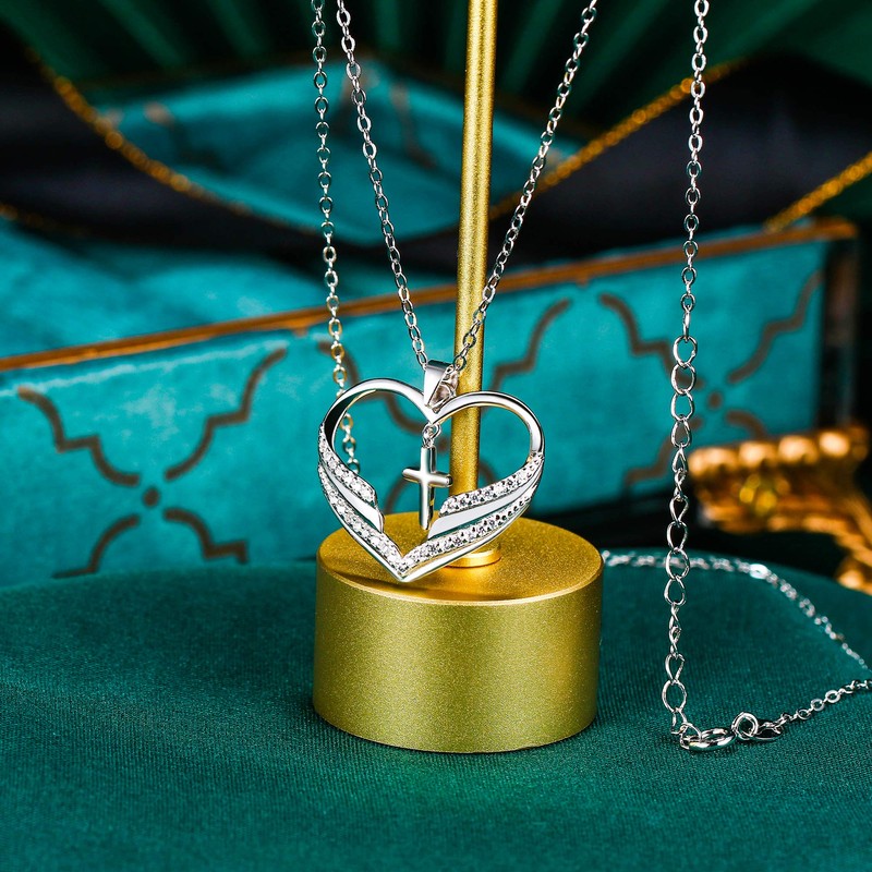 - Cross in Heart: Dancing cross in heart pendant design, love heart with cross pendant means"Jesus in My Heart", Suitable for Christian Holy Cross Prayer Church Party Love Faith Hope Occasions or Any Leisure Day With the cross heart necklace, hope, love