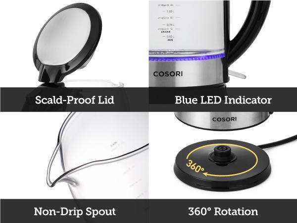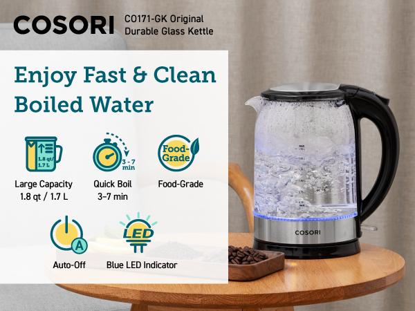 COSORI CO171 Electric Kettle 1.8QT Speed-Boil, Auto Shut-Off, Boil-Dry Protection, LED Indicator, BPA-Free, Perfect for Coffee&Tea Lovers, Matte Black