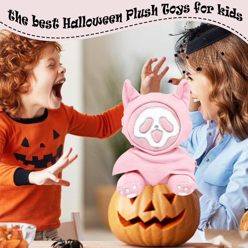 COSORO Pink Ghost Face Plush Toy - 23cm Luminous Terrors Halloween Scary Scream Toy, Stuffed Horror Killers Ghost-face Plushie Doll for Kids Birthday