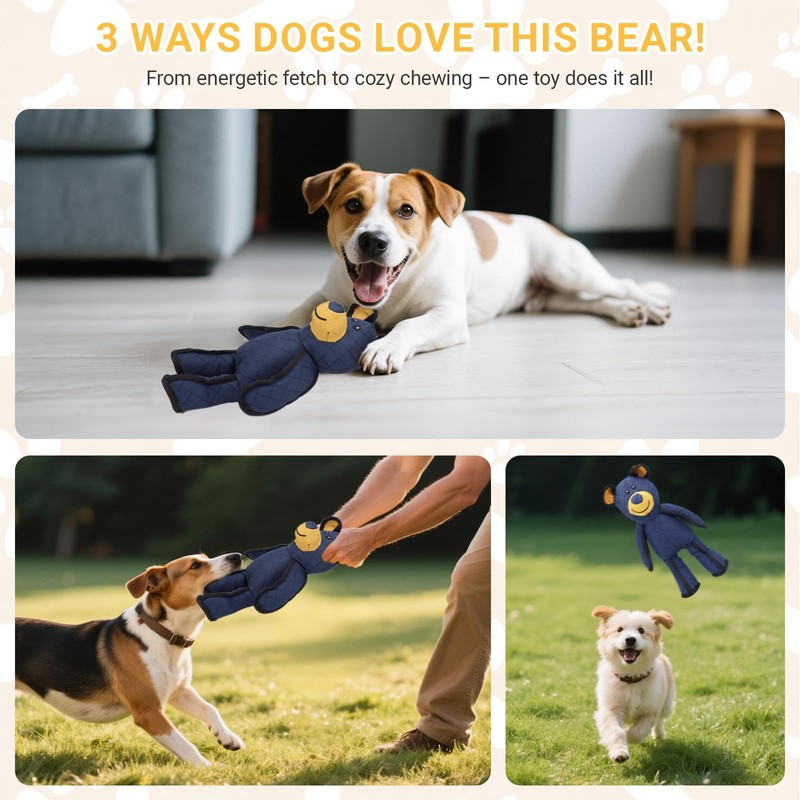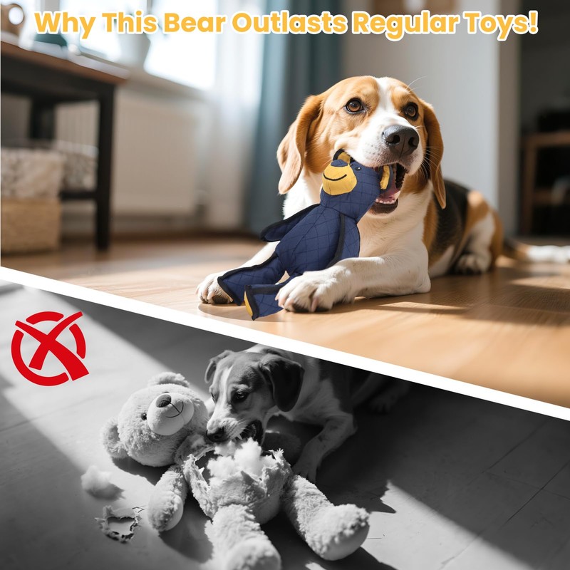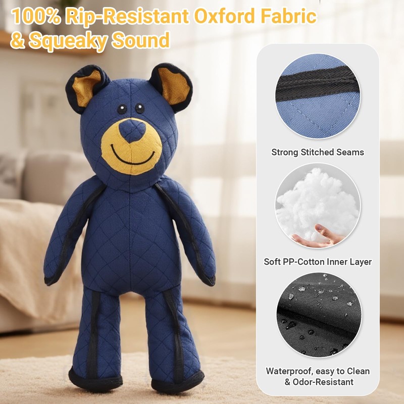 - Battle-Tested Durability: Engineered for power chewers, this bear dog toy features premium 620D oxford fabric with military-grade double stitching. The tear-resistant oxford cloth provides 3X the durability of regular plush toys, while the extra-loud squeaker keeps dogs engaged.