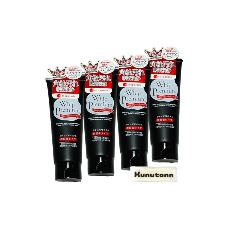 Cospalade Facial Cleansing Whip Premium Facial Cleansing Foam, Made in Japan Charcoal & Black Pearl, 4.9 oz (140 g), Set of 4 + Kunutonn Original Logo H Towel Included
