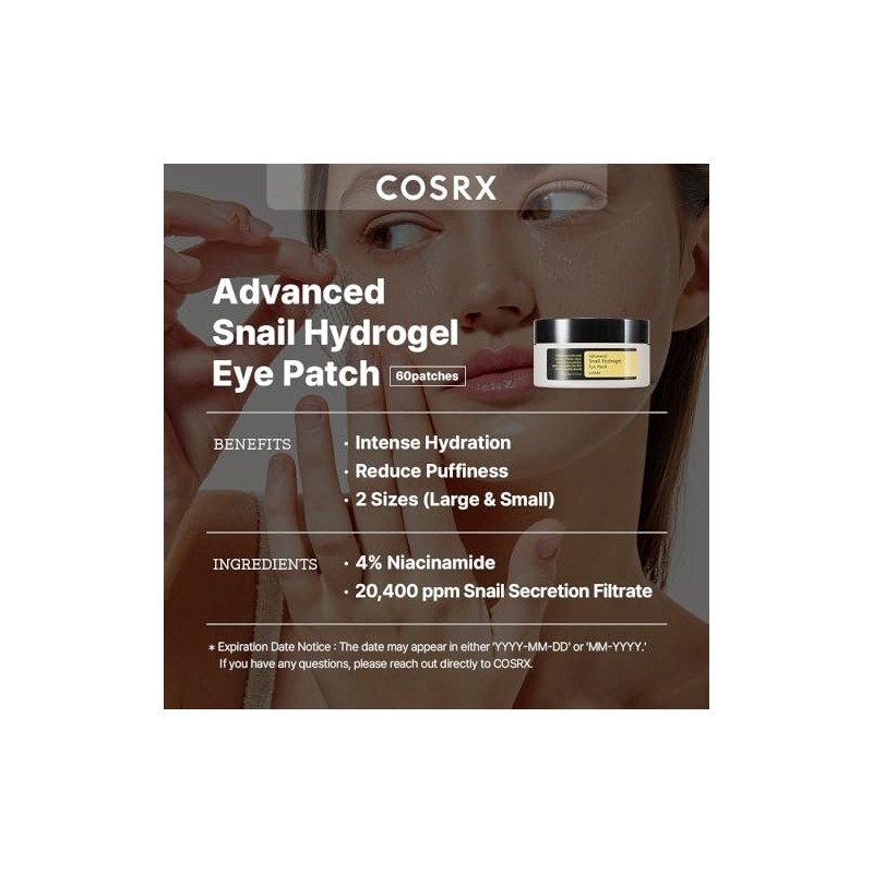 COSRX Advanced Snail Hydrogel Eye Patch (60pc), Gel Serum Mask, Puffy Undereye Treament, Fine Lines, Refresh, Hydrate| Paraben free, Korean Skin Care