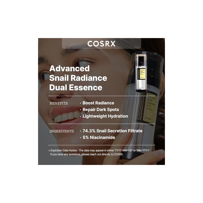 COSRX Niacinamide 5% + Snail Mucin 74% Dual Essence, Anti Aging Face Serum for Dull Skin, Hydrating, Brightening, Repairing, Sensitive Skin, Not Tested on Animals, Korean Skin Care, 2.70 fl.oz / 80ml