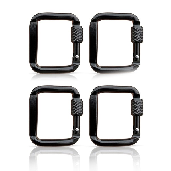 COSSIKA Climbing Buckle, 4 Pieces Square Carabiner with Screw Clasps, Aluminum Alloy Carabiner Buckle, Key Chain, Climbing Button, Camping Hiking Hook