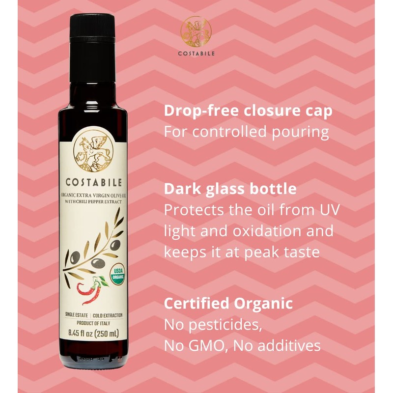 Costabile Orange & Hot Chili Combo. Infused Extra Virgin Olive Oil from Puglia. All-natural olive oils. 100% Italian. COSTABILE