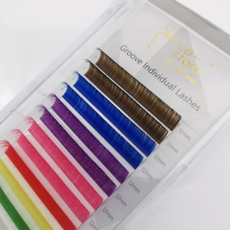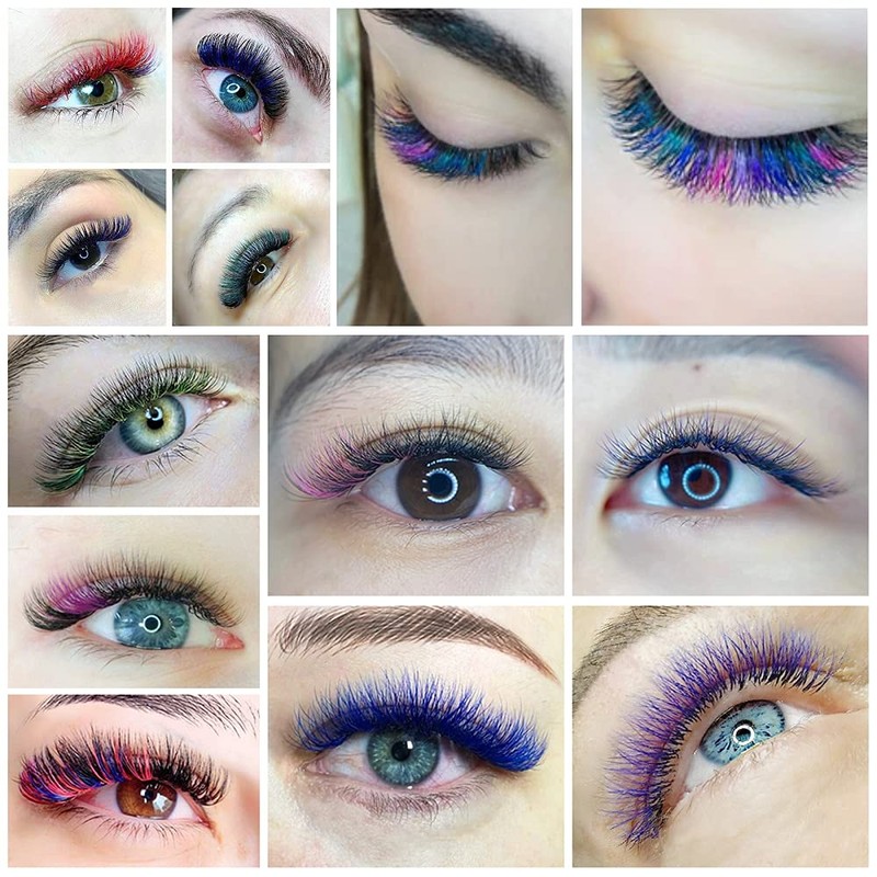 - Specifications: Soft natural and lightweight beehive eyelash extensions. 12 rows; thickness 0.07 mm; curvature D length 14 mm; eight colours: brown/blue/purple/pink/red/yellow/green/white