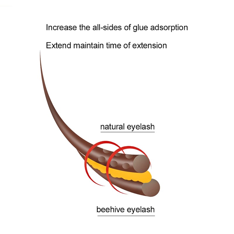 - Laser technology: there are cavities on the part of the eyelash extension, it increases the adhesive absorption and prolongs the effect of eyelash extensions, laser beehive caves extend the maintenance time of eyelash extension, do not worry about the root tear when picking up the eyelashes