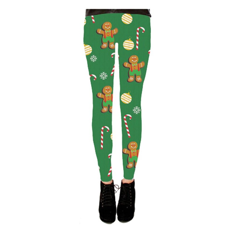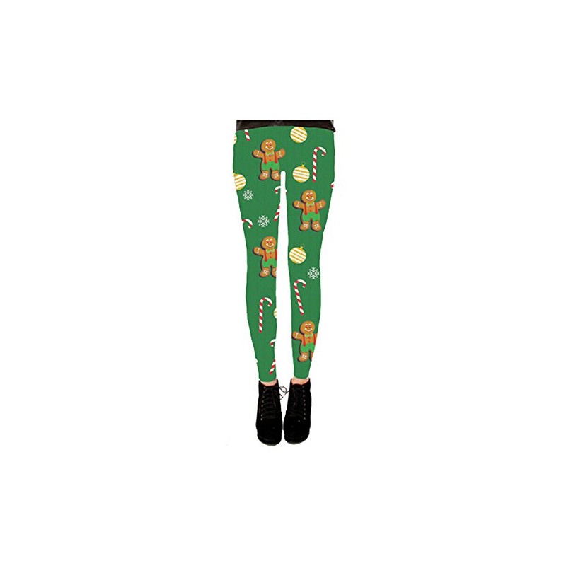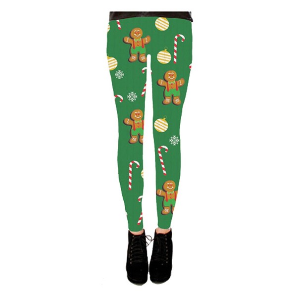 Costume Agent Gingerbread All Over Green Juniors Ugly Christmas Leggings (Small)