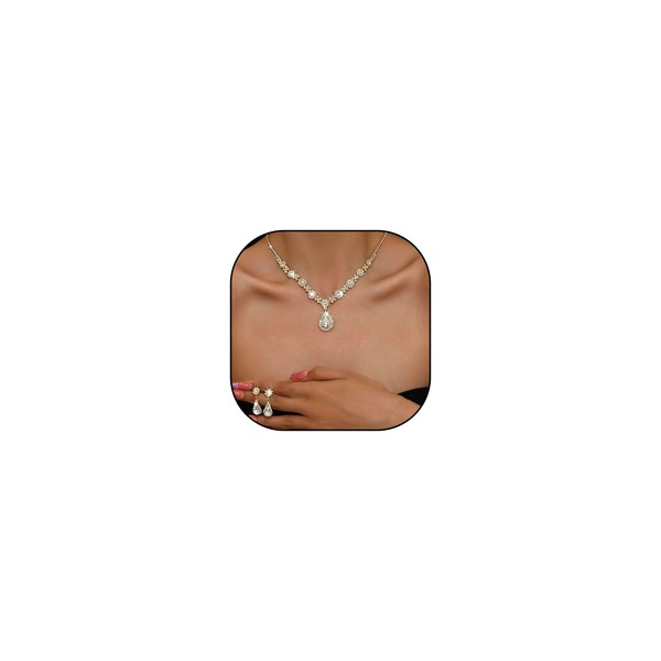 - ELEGANT BRILLIANCE FOR YOUR SPECIAL DAY:Elevate your bridal ensemble with our stunning wedding jewelry sets for women, designed to captivate on your wedding day. Each piece in this jewelry set features dazzling rhinestones meticulously arranged to reflect light with every movement. The necklace and earrings combo exudes sophistication, blending timeless elegance with modern flair. Perfect for brides, bridesmaids, or formal events, this set ensures you shine effortlessly.