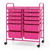 COSTWAY 12-Drawer Rolling Storage Cart, Moveable Art Craft Organizer W/Lockable Wheels, Metal Shelf, Files Arrangement Tools Makeup Storage Cart for Office, Home, School, Hot Pink