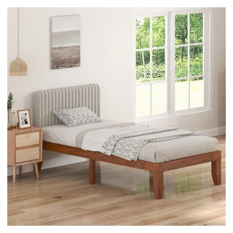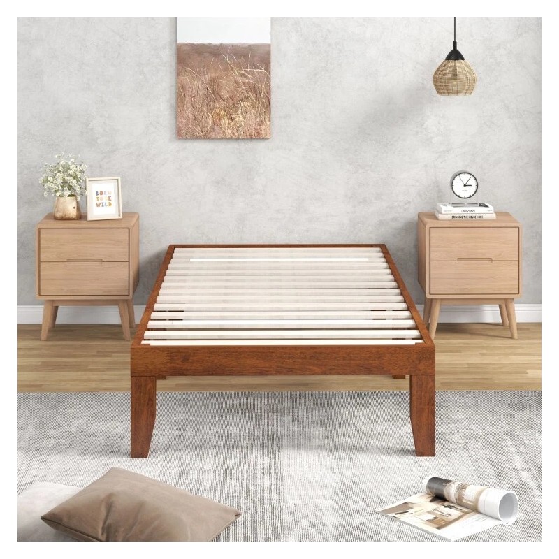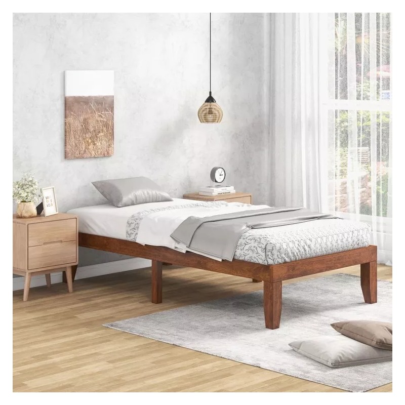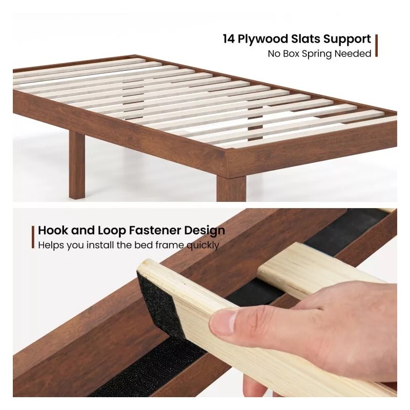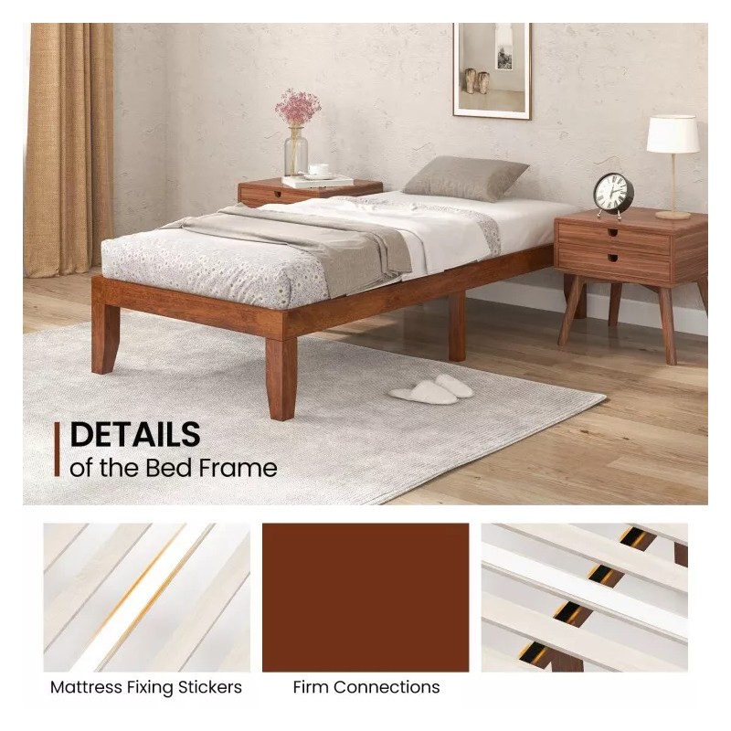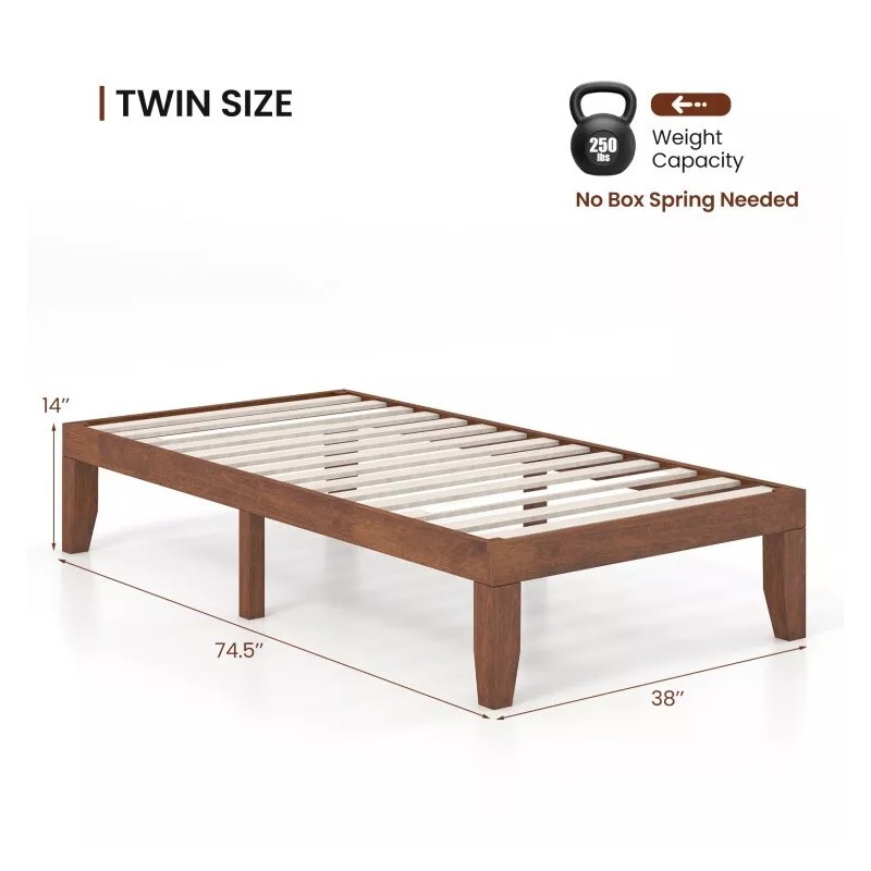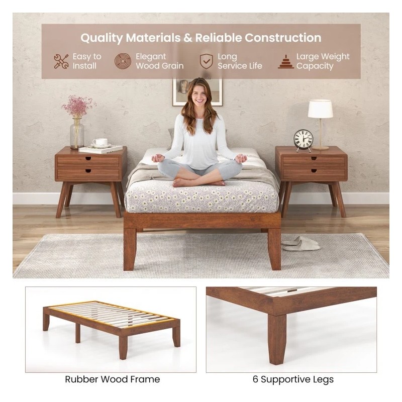 COSTWAY 14" Twin Size Modern Wooden Platform Bed Frame Bedroom w/Solid Rubber Wood Frame