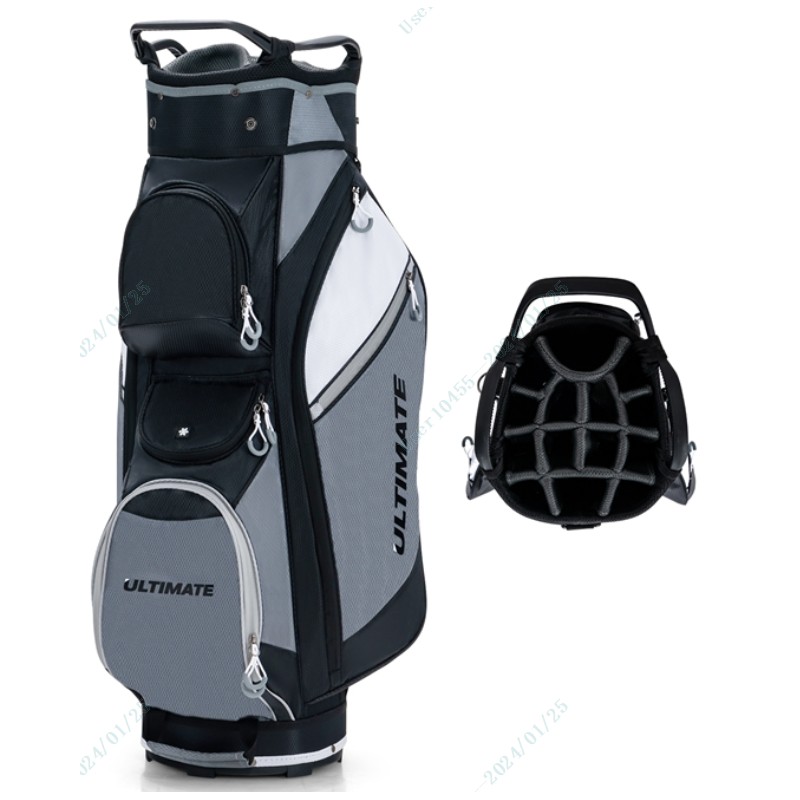 ● Non-slip Base and Durable Material: The serrated base ensures better skid resistance and higher stability, making this golf club bag stand firmly on the ground. This portable golf cart bag is made of premium nylon material that enjoys great water resistance and wear resistance, capable of long-lasting service.