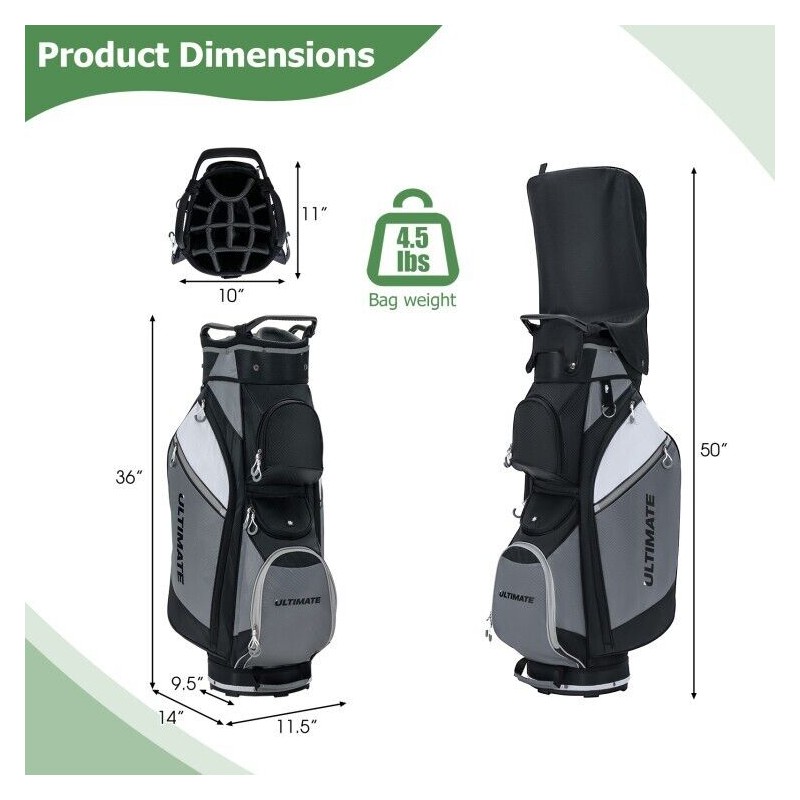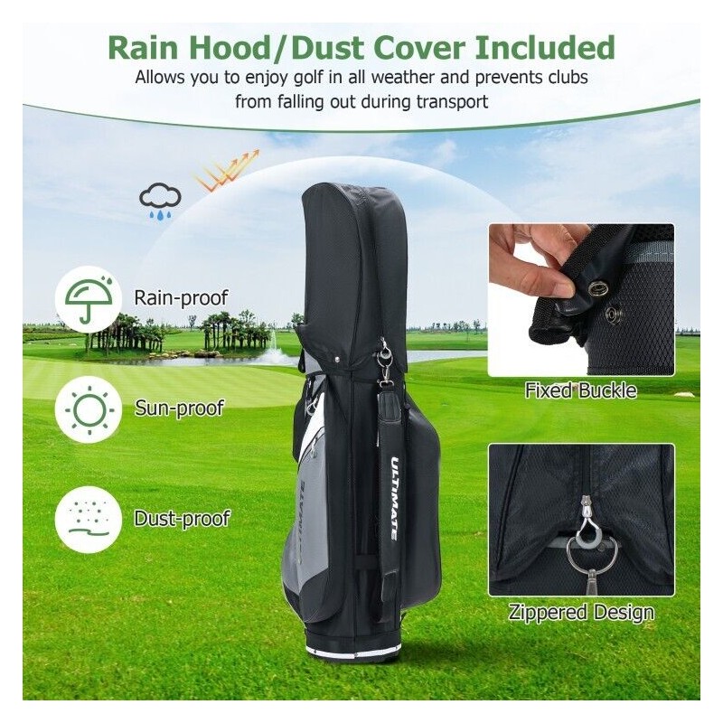 Costway 14-Way Divider Golf Bag Stand Waterproof Rain Hood Cooler Bag & Valuable Pocket