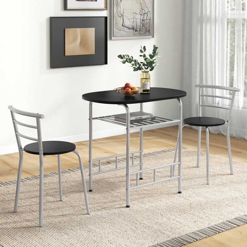 COSTWAY 3 Piece Dining Table Set for 2, Modern Round Table Set with 2 Stools, Pub Table and Chairs Dining Set with Built in Storage Layer, Space Saving for Kitchen, Apartment and Dining Room (Silver)