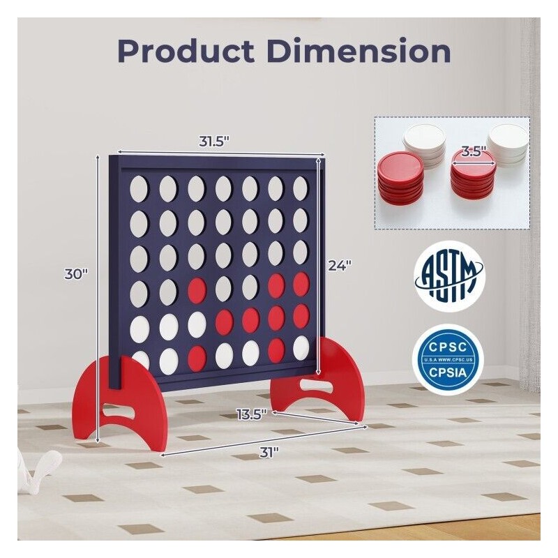 Costway 4ina Kids Giant Row Connect Game Wooden jumbo 4-to-Score Game Set w/Carrying Bag