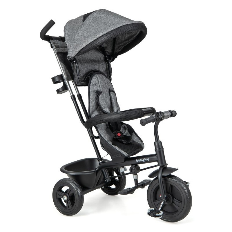 Costway 4x1 Baby Toddler Trike Tricycle Removable Canopy Adjustable Push Handle 3 Wheel