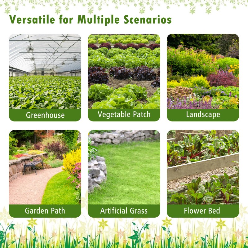 The 6.5 x 330 ft weed barrier fabric is conveniently delivered as a half-folded and rolled package, making it easy to store and use whenever necessary. It is carefully crafted using superior PP woven material, ensuring durability and longevity. And with a thickness of 3.2 OZ/Sq.Yd, it strikes the perfect balance between being lightweight and robust, allowing for easy handling and tear resistance. Moreover, its high-density weave design ensures better permeability, promoting healthy root growth by providing optimum hydration and oxygenation for your plants. Other than that, it is also easy to cut and install, and you can also cut it into any size or shape, meeting different needs. Whether you're creating flower beds, walkways, or vegetable gardens, this fabric will provide effective protection for your plants while maintaining a clean and organized space.