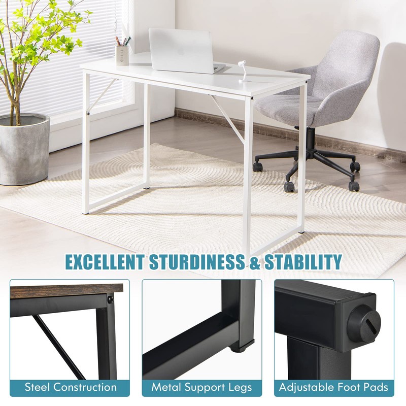 Our laptop desk will be a practical addition and bring great convenience to your home. Coming with the steel structure and MDF desktop, the PC desk presents excellent weight capacity. Its overall stability is also well ensured by four adjustable foot pads. On the one hand, our workstation features a 40” x 20” wide tabletop where you can place a computer and many office essentials. On the other hand, its overall size is 40” x 20” x 29.5”, which makes the desk compact enough to be placed in a corner. If you want to purchase a dining desk, kid study desk or office desk, our metal frame desk can perfectly meet all your needs.