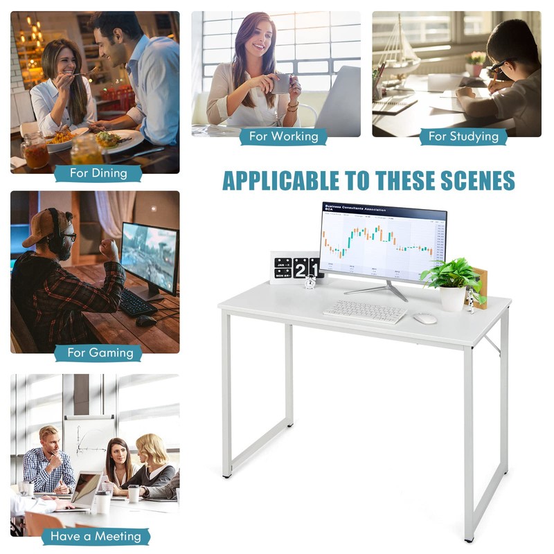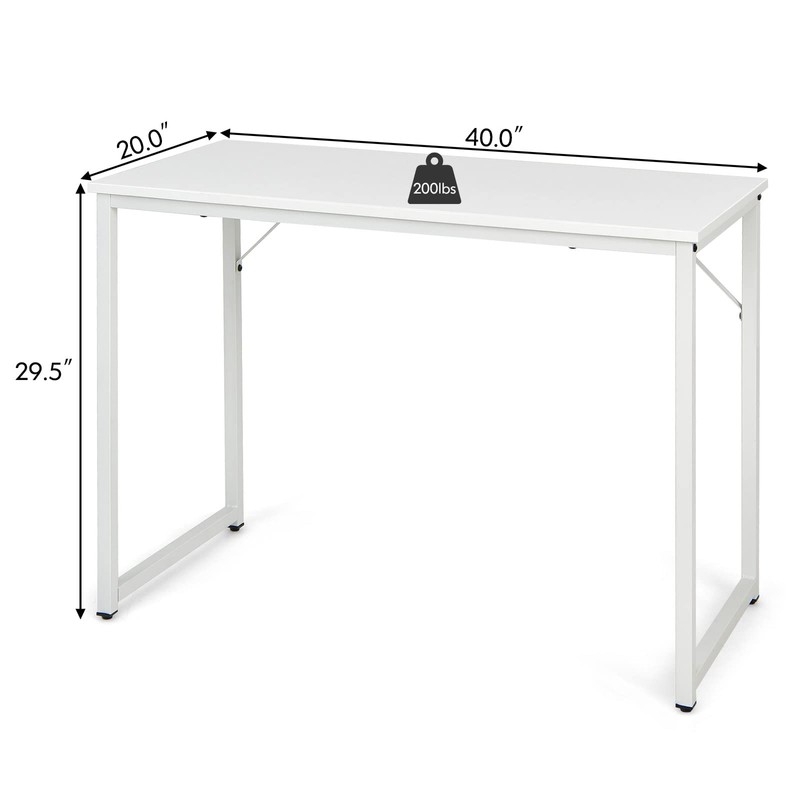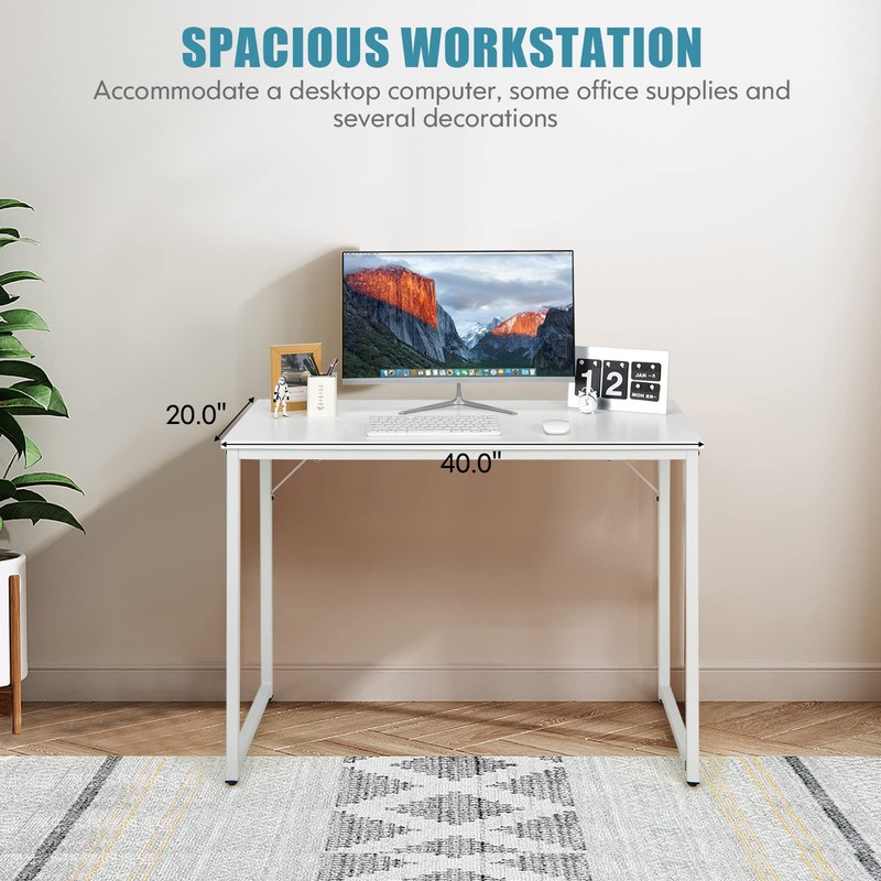 COSTWAY Home Office Computer Desk, 40 inch Modern Simple Writing Study Desk, Metal Frame Gaming Desk, Laptop PC Workstation for Living Room, Bedroom & Study (White)