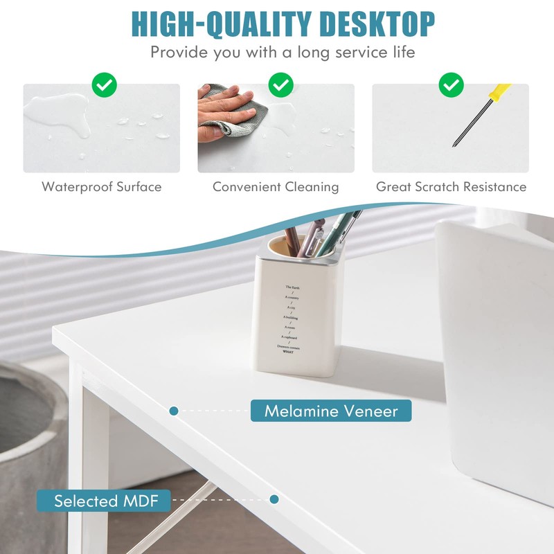 - 【Reliable Workstation:】Both MDF desktop and thicken steel frame greatly improve the overall sturdiness and perfect load capacity. What’s more, coming with adjustable foot pads, four metal support legs effectively help the computer desk stay stable on different grounds.
