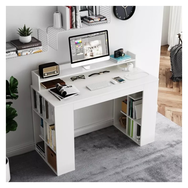 Home Office Table Computer Study Desk w/Dual 3 Tier Bookshelf and Monitor Shelf