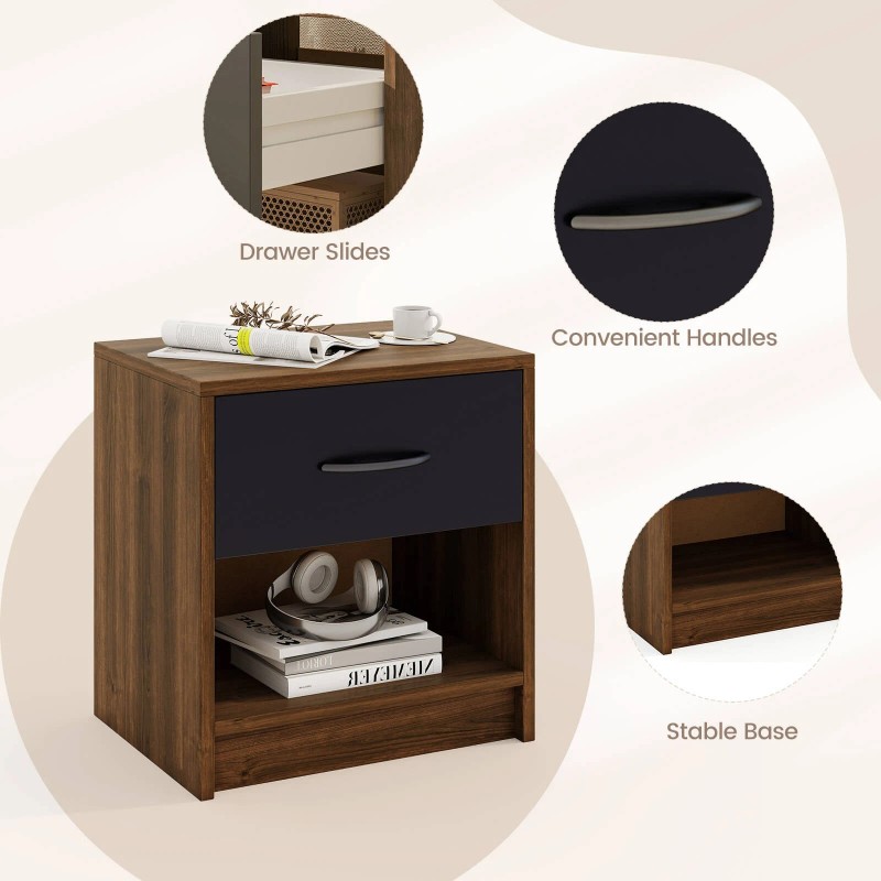 Costway Modern Nightstand Bedside Table with Drawer Open Storage Shelf for Small Spaces