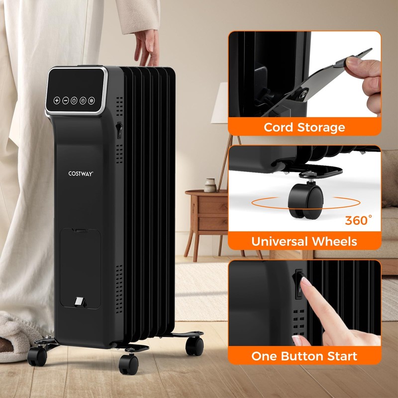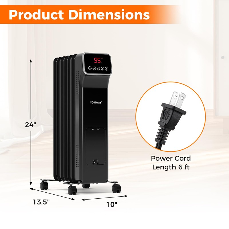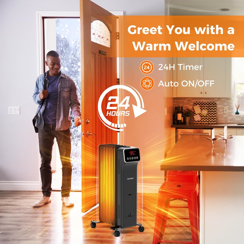 - Low Noise & Convenience: Operating with minimal noise without overly drying the air, our oil-filled radiator is ideal for sleeps and quiet reading times. Moreover, this radiator heater includes a convenient 24-hour timer, enabling you to schedule auto starts before waking up or offs after bedtime.