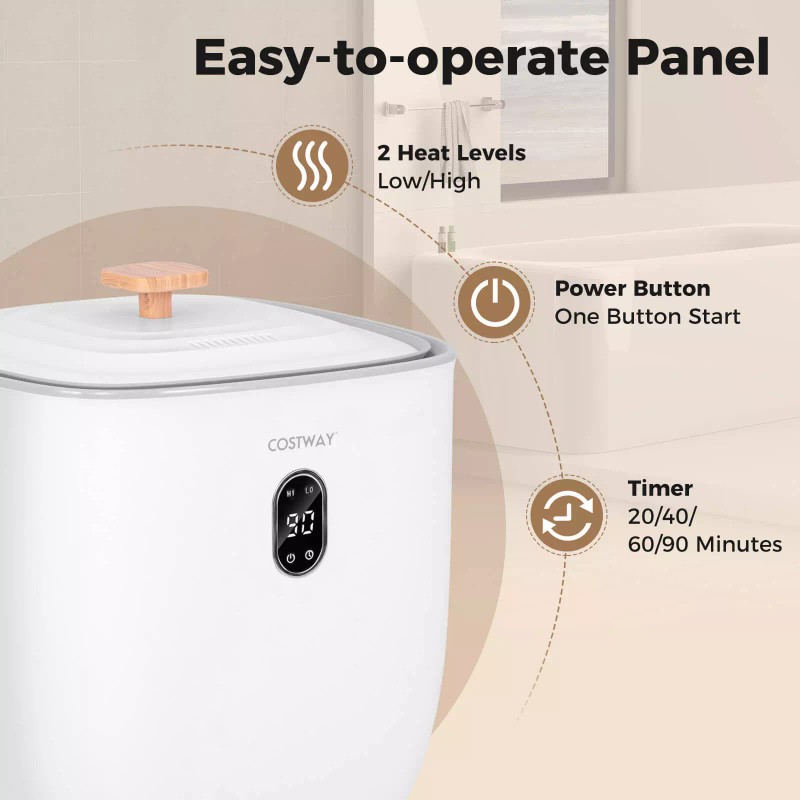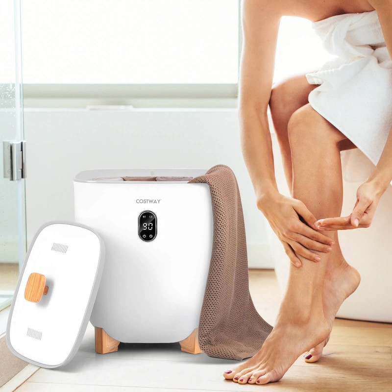 The inner core heats up quickly and evenly, which is effective to fluff your towels and garments. The 25L capacity towel heater allows you to wrap yourself in the warm comfort of heated towels, bathrobes, and even blankets, making every bath or shower a spa-like indulgence. The control panel makes operation a breeze. Choose your perfect level of coziness with 2 temperature settings and smart timer. Moreover, safety is paramount with the automatic shut-off feature that prevents overheating. Looking for a thoughtful and luxurious gift? This electric towel warmer is an excellent choice.