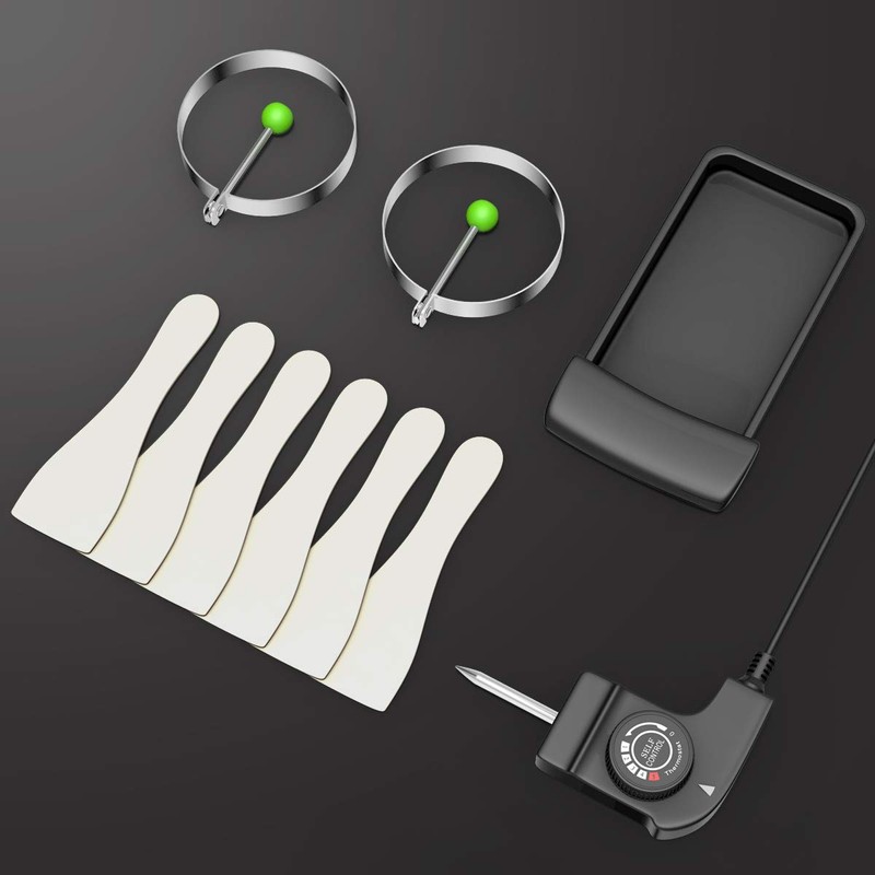 - Equipped TablewareThis extra large electric griddle comes with 6 free wooden spatulas and 2 egg rings for much more convenient. Slide-out drip tray can be removed and cleaned easily.