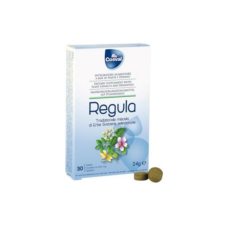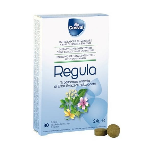 Cosval Regula dietary supplement is an herbal formula with senna to treat constipation.