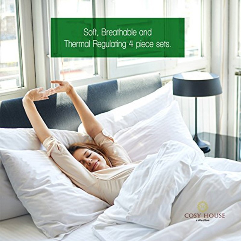 - ''' SPA-LIKE SOFTNESS: Cosy House Bamboo Bed Sheets are made from irresistibly soft, naturally luxurious fabric blend, 40% bamboo rayon and 60% micro-polyester, giving you the most comfortable, eco-friendly sheets on earth.#||# COOL & BREATHABLE: Bamboo fibers regulate heat making it breathable and cool, cooler than cotton sheets, throughout the night. (They also resist stains & wrinkles, so they look as good as they feel.)#||# NATURALLY CLEAN: These sheets repels odors and allergens as well as resist pollen, dust mites & even harmful bacteria. They're natrually Hypoallergenic!#||# ECO-FRIENDLY: Saves more trees, regenerates naturally without pesticides or chemicals. It keeps our air cleaner and our environment healthier.#||# 100% GUARANTEE: Best Customer Service in the Market, At Cosy House we are very serious about customer satisfaction thats why we offer 100% Lifetime Money Back Guarantee.'''