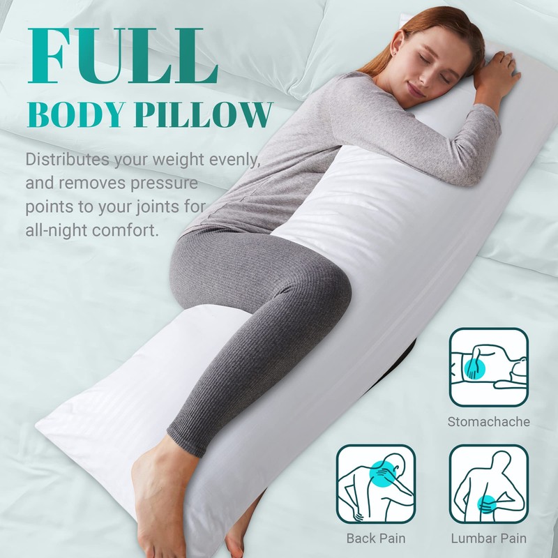 Cosybay White Full Body Pillow Insert - Fluffy Long Bed Pillow for Adults - F...