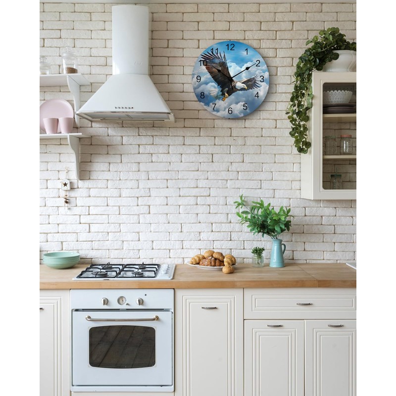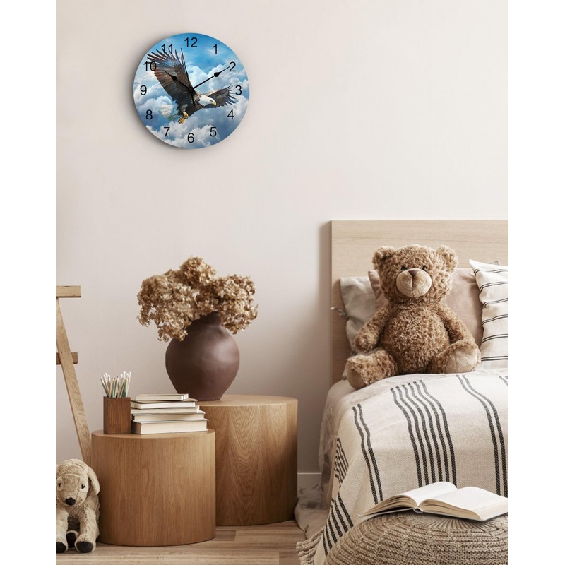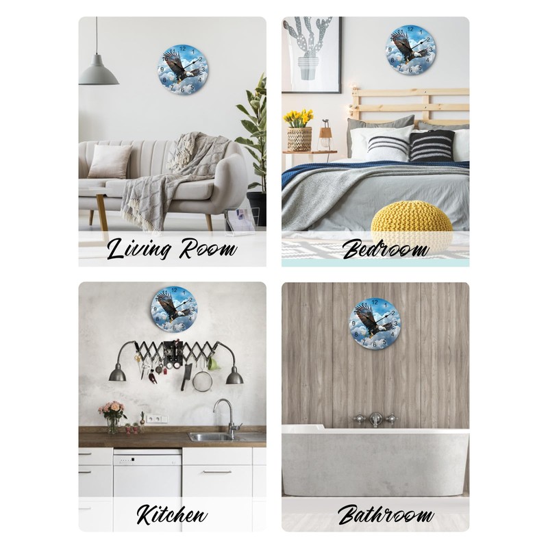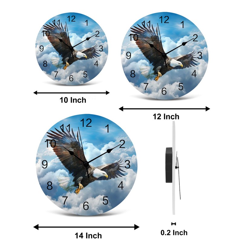 - Easy to Use: Back slot design offers easy installation. This eagle animal blue sky and white clouds wall clock will complement any contemporary, modern, or traditional home decor.You can decorate it with your bedroom,Kitchen,kids room,study.