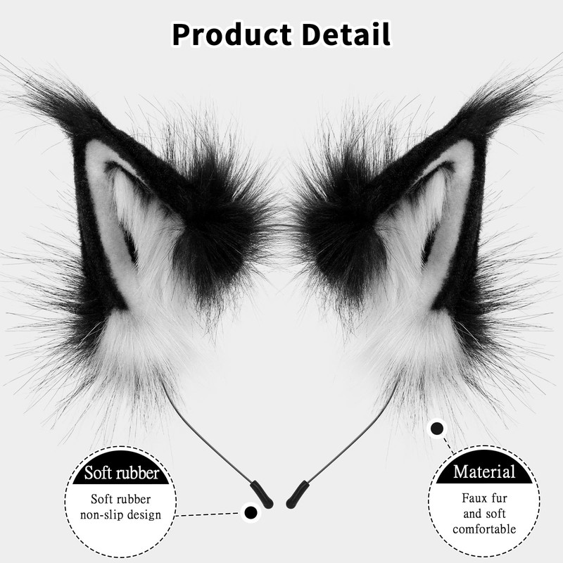 COSYEARS Faux Fur Furry Cat Ears Headband and Fox Wolf Tail Plush Cosplay Costume Accessories Set Halloween Parties
