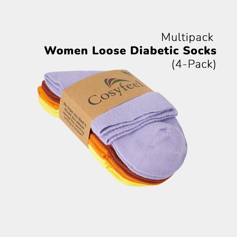 Cosyfeel® Women Loose Diabetic Socks | 4-Pack Neuropathy Ankle Socks for Ladies | Super Soft Eco-Friendly Bamboo Material | Durable with Seamless Toe | Multicolour Patterns | 4 Seasons