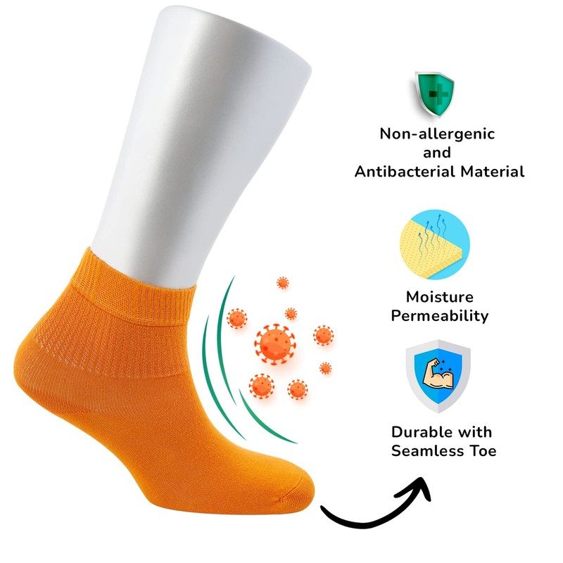 - [Super Soft Breathable Material] : Cosyfeel diabetic ankle socks with micromesh, breathing hole let the air in and removes the sweat. Reinforced toe and heel make them extremely comfy and durable. The best thin socks for hot, sunny days. 80 % Bamboo 17 % Polyamide 3 % Elastane (Polyester Free)