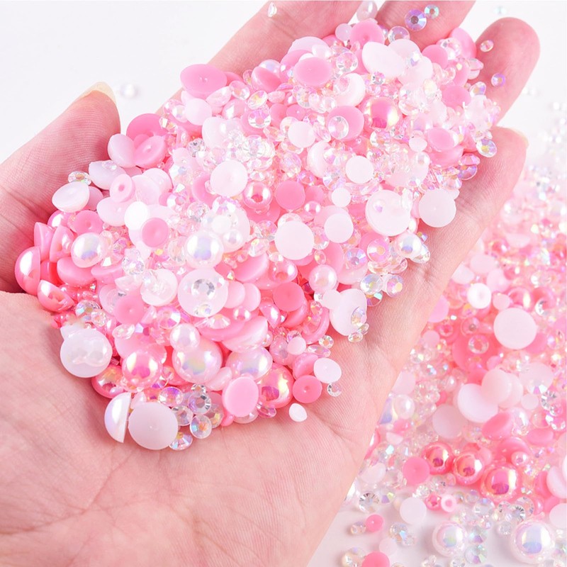 Cosyhav 30g Mix Pearls and Rhinestones,Flat Pearl and Rhinestones for Craft,Multi Size for Crafts DIY,Nail Art,Makeup(Pink Series)