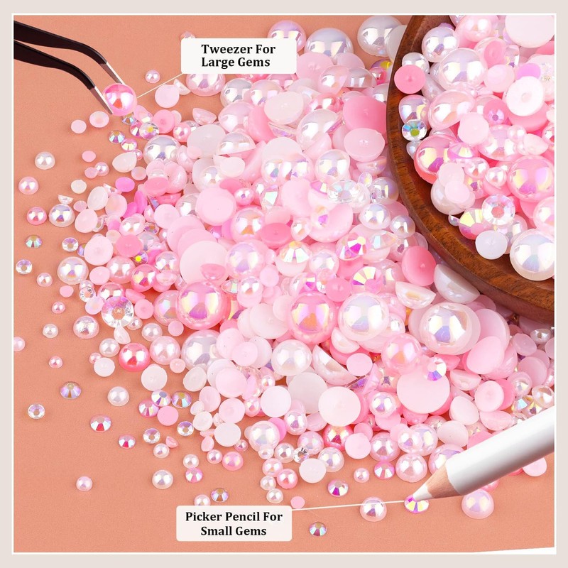 - 【Product Content 】 Contains 30g of high quality pink series flat back pearls and rhinestones ,with essential tools including precision tweezers and wax pencil for easy application,perfect for various crafts